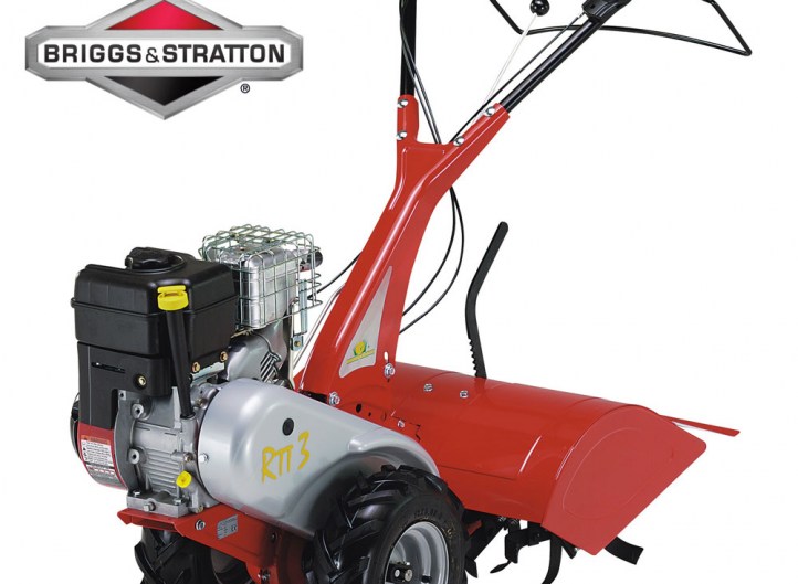 A powerful rear-tine tiller, suitable for prolonged use in managing larger allotments, small holdings, nurseries and preparing areas for grass seeding or turf laying. Highly effective soil tiller for working with densely packed earth and older lawns. The large wheels with chevron tyres provides maximum traction, while the tines provide superior bite allowing your petrol tiller to dig deeper into the soil breaking it up more efficiently. This heavy duty tiller has a chain drive on its rotors and wheels allowing it to tackle tougher tasks, plus has a reverse gear for easier operation. Handlebar height is adjustable for ergonomic operation.