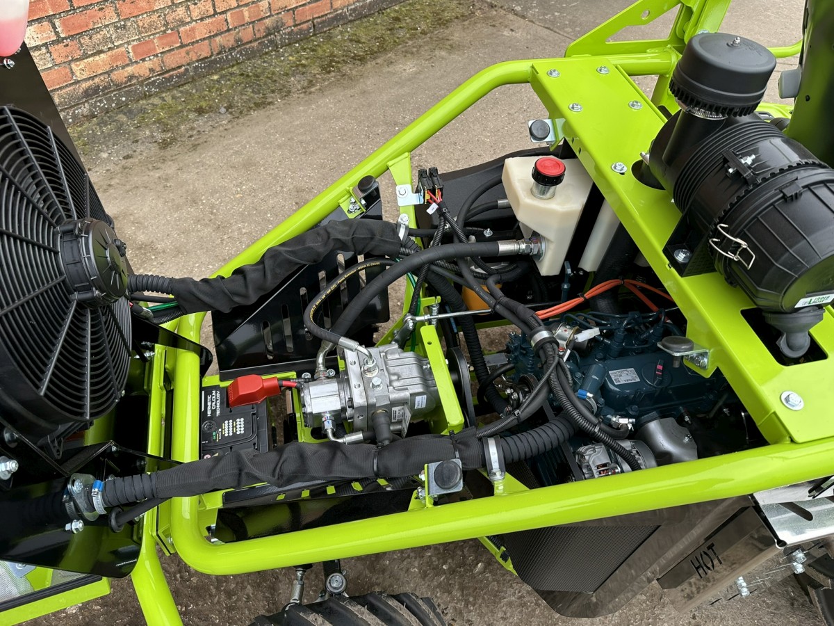 Engine | Kubota D722 Start electric, with 12 V battery Supply diesel Displacement 722 cc, 3 Cylinders Power 18 HP (13.2 kW) Liquid cooled with electric impeller and equipped with automatic radiator cleaning device Cyclonic integrated air filter |