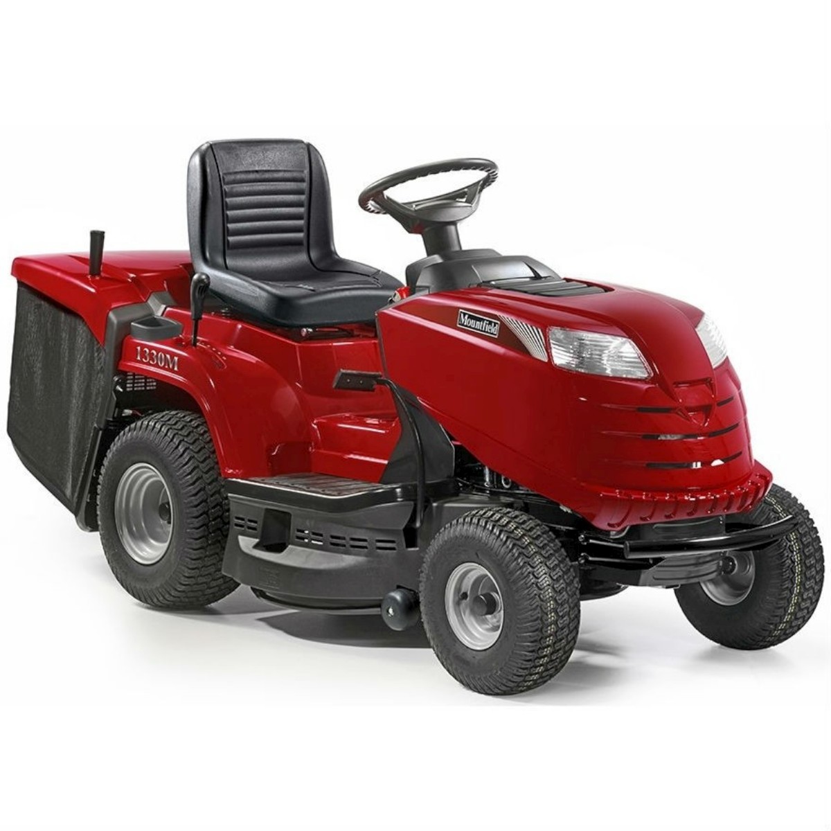 The Mountfield 1330M is the first lawn tractor in the sub 84cm category to feature a twin bladed cutting system; the blades contra rotate and direct grass cuttings through the wide rear discharge chute into the collector. Collection is cleaner and more powerful due to the direct centre rear discharge, in conjunction with the throw and air volume generated by two blades.