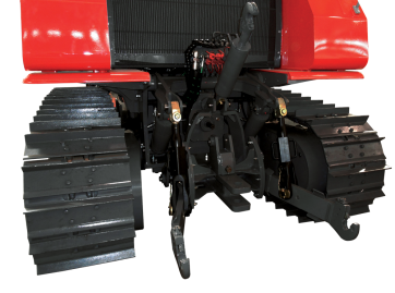 1) Optimized distribution of the weight of the machine. The center of gravity is far more forward than in a traditional tracked tractor to achieve really good pulling performances with a reduced weight of the machine.