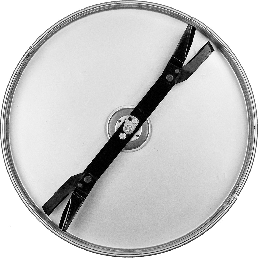 The single blade cutter deck has a working width of 91 cm. The structure of the whole cutter deck is designed to be shock-resistant. The blade shaft has a large diameter and the robust drive train ensures reliability in the most demanding of situations. The cutter blade is made from a special type of steel having low-noise levels, and is fitted with two reversible swing tip blades (sharpened on both sides so that they can be reversed once they are worn) which protect the shaft in case of striking unseen objects. The cutter deck also has protective side openings which can be raised for easy maintenance and cleaning.