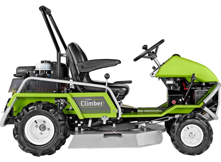 The Climber 922 is a hydrostatic ride-on brush cutter. It is equipped with a diff- lock and front parking brakes and it is ideal for mowing high grass and overgrown neglected areas. The machine is especially suited for use on steep slopes and banks due to its low centre of gravity and wide wheelbase. With a high performance Briggs & Stratton 18HP engine, the Climber 9.22 can perform these tasks safely,quickly and efficiently. The machine is ideal for working in the countryside, agriculture, or in the maintenance of both professional and domestic gardening. Its extreme maneuverability, smooth drive and high work rate make the Grillo Climber 9.22 an extremely rapid and efficient machine whilst at the same time being very easy to use.