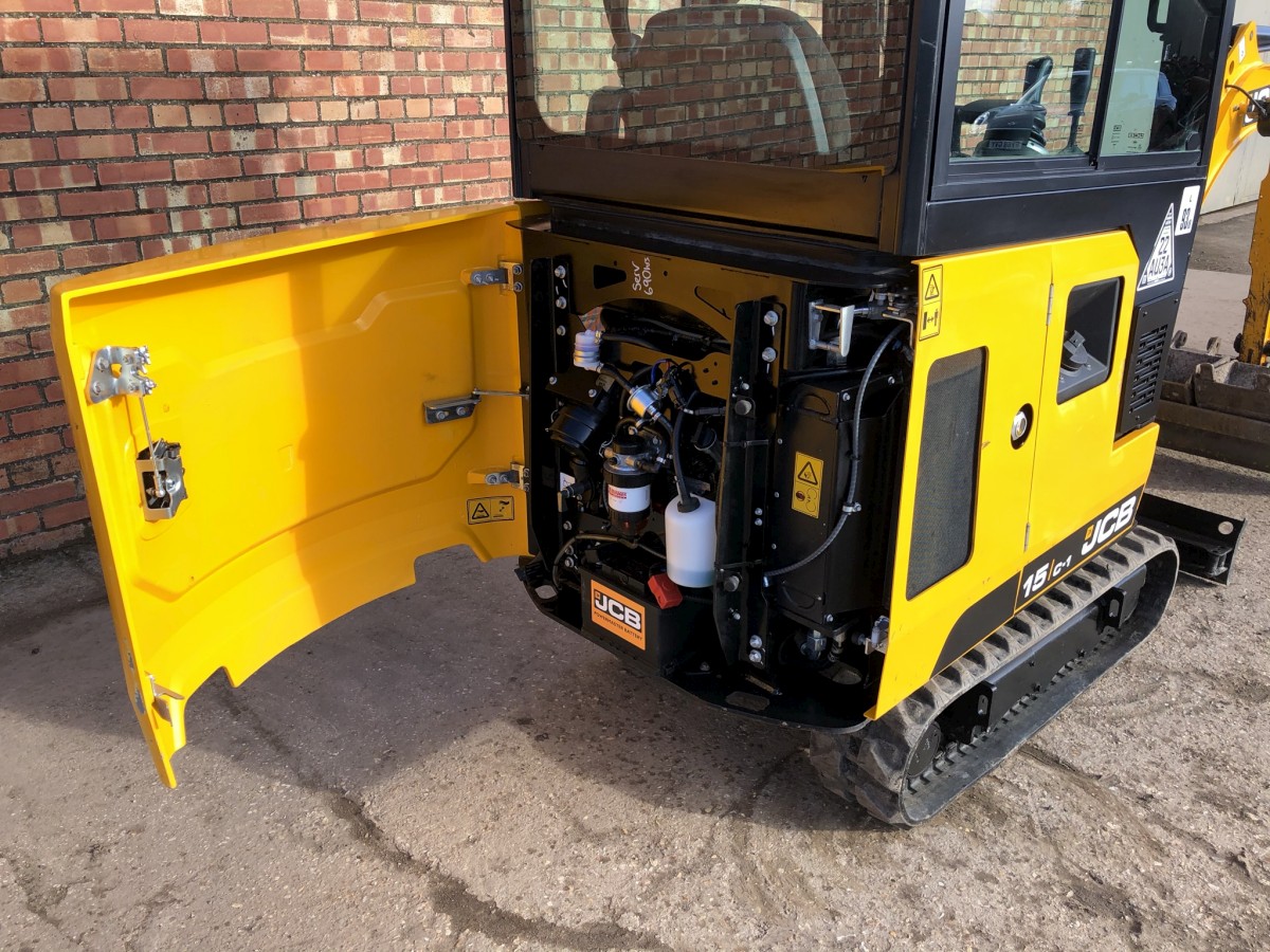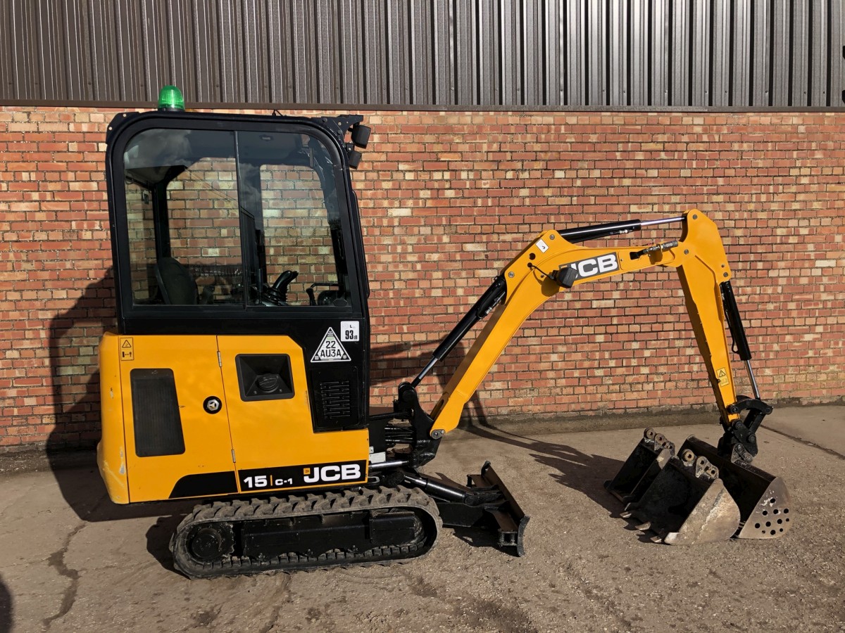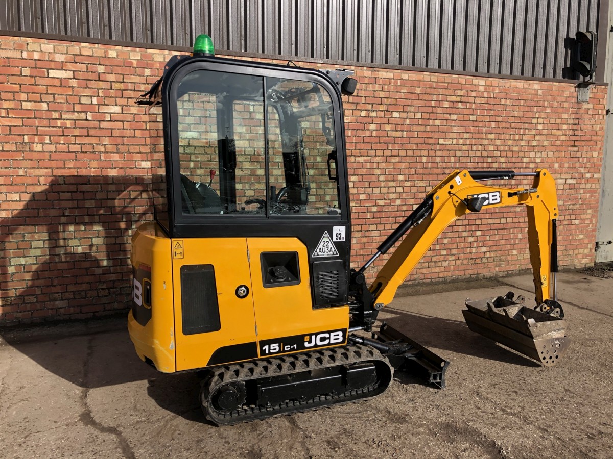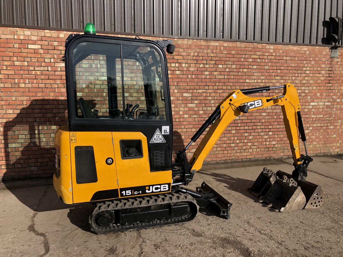 JCB 15C-1 Mini Digger Printer-friendly versionProduct number: 15C1HSOLDJCB 15C-1 Mini Digger Year 2018 ONLY 789 Hours Full cab with heater 3 Buckets Rubber tracks 90% 3 cylinder Perkins diesel engine Flashing light Immaculate condition