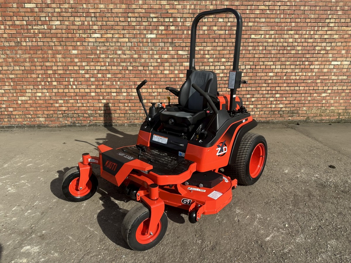 Kioti ZXD61 Printer-friendly versionProduct number: zxd61Kioti ZXD61 Zero Turn Mower 3 cylinder Diesel 25Hp 61" cutting width Mulch or side discharge Fabricated fully welded cutting deck Hydraulic deck lift and lower Comfort seat with armrests Full 2 years warranty