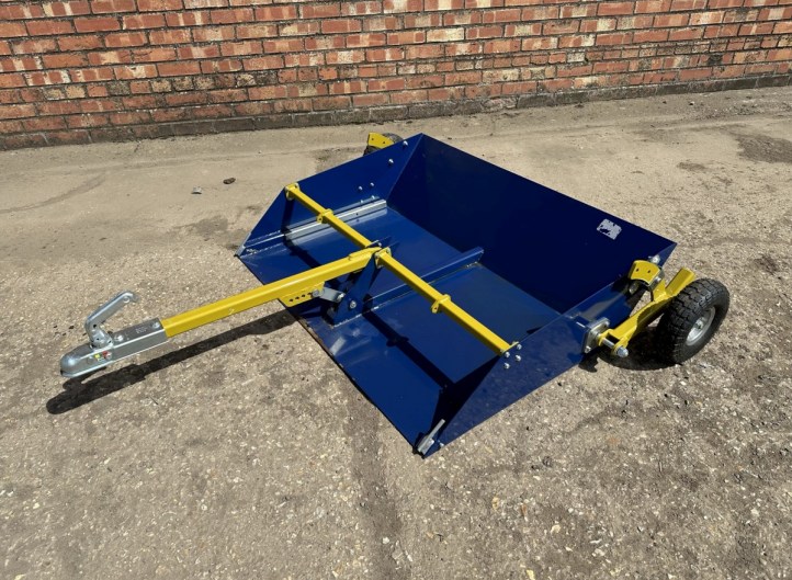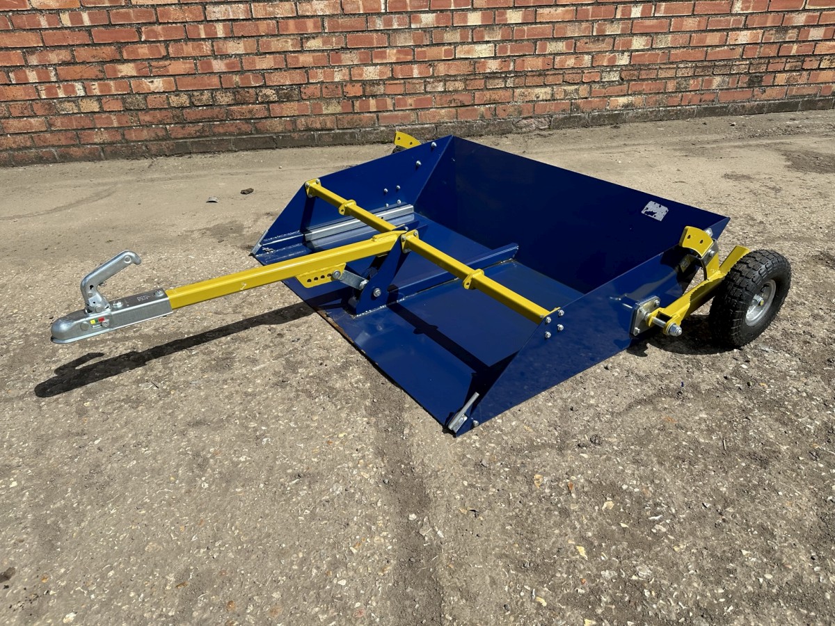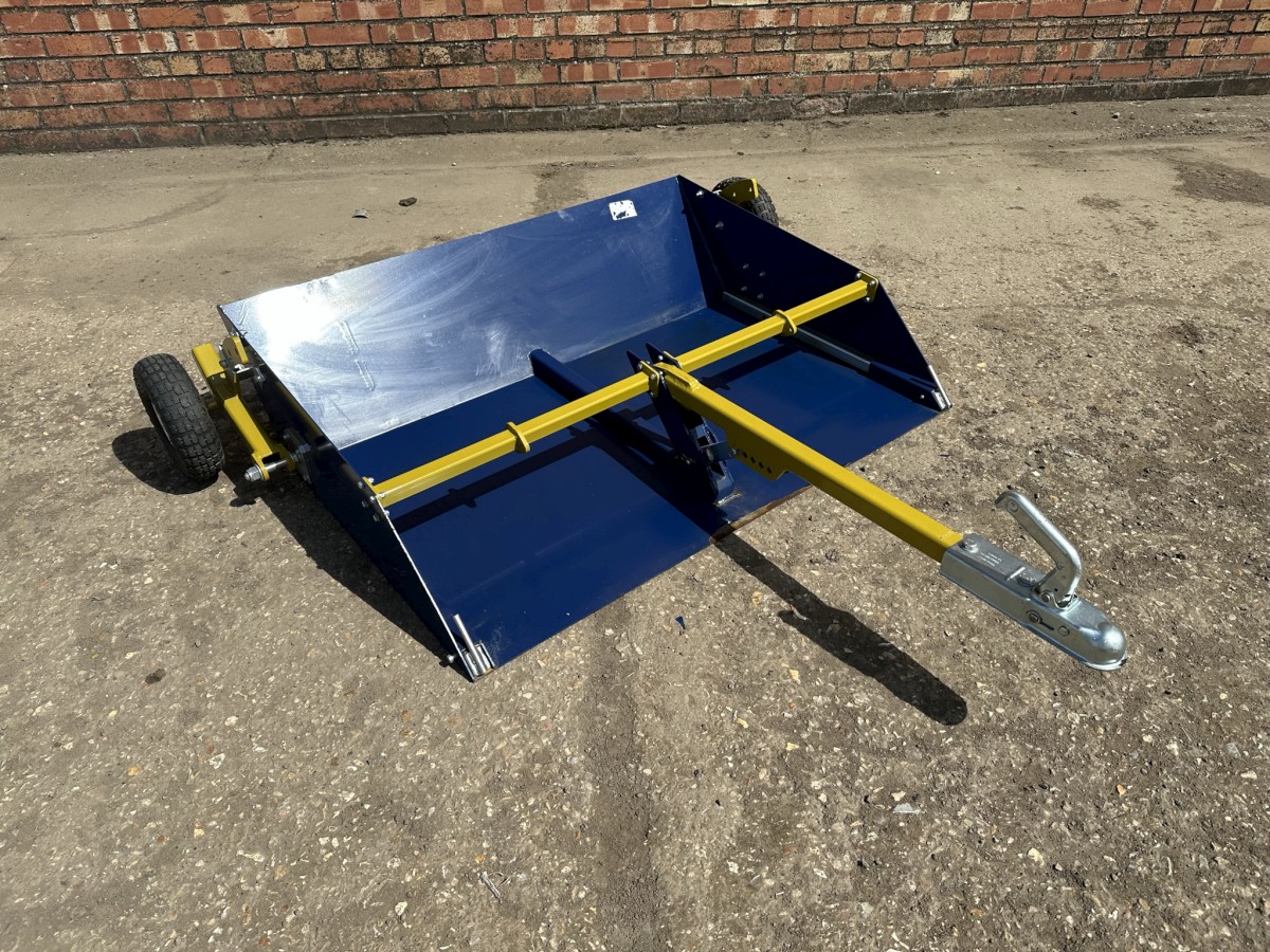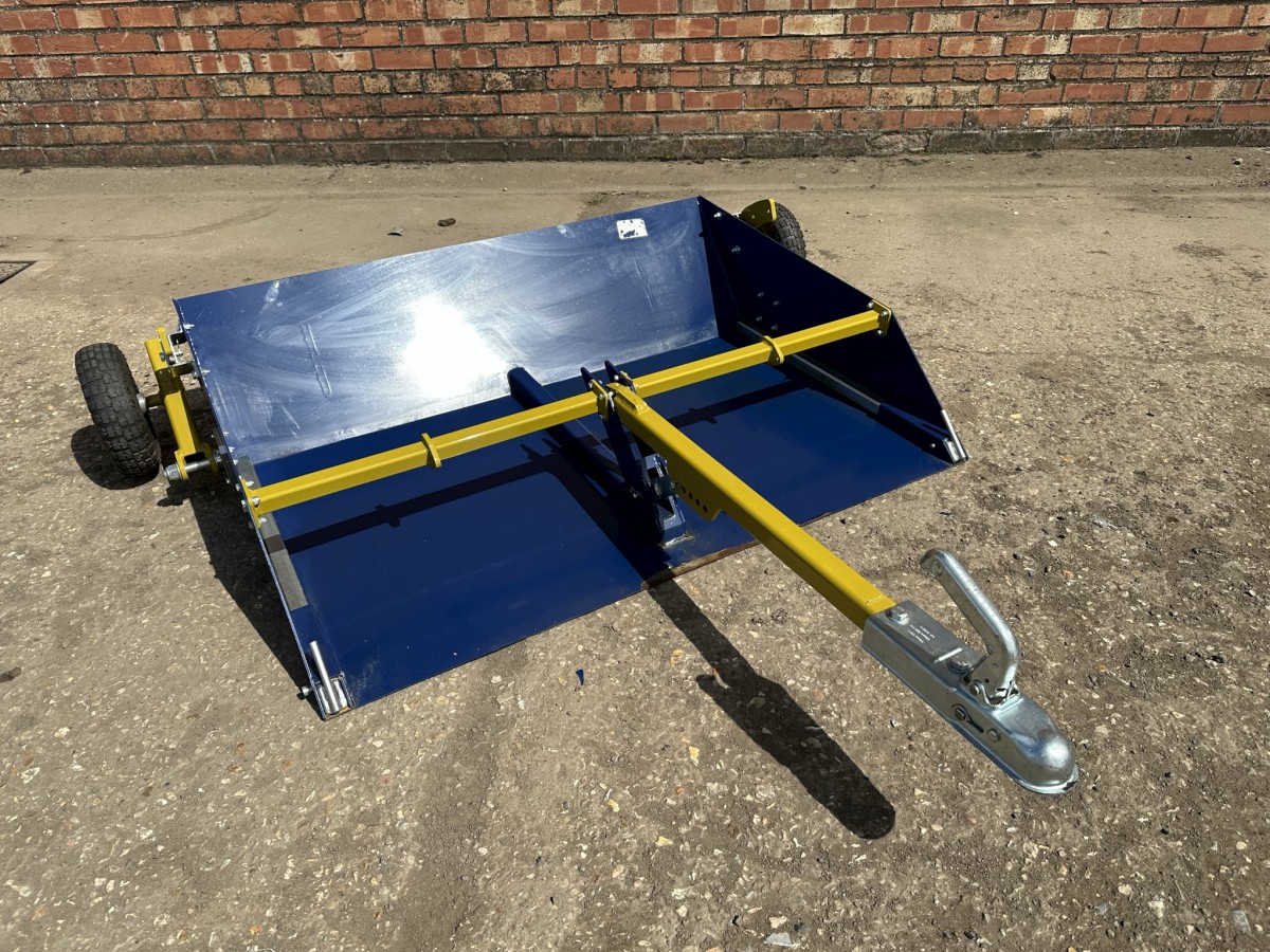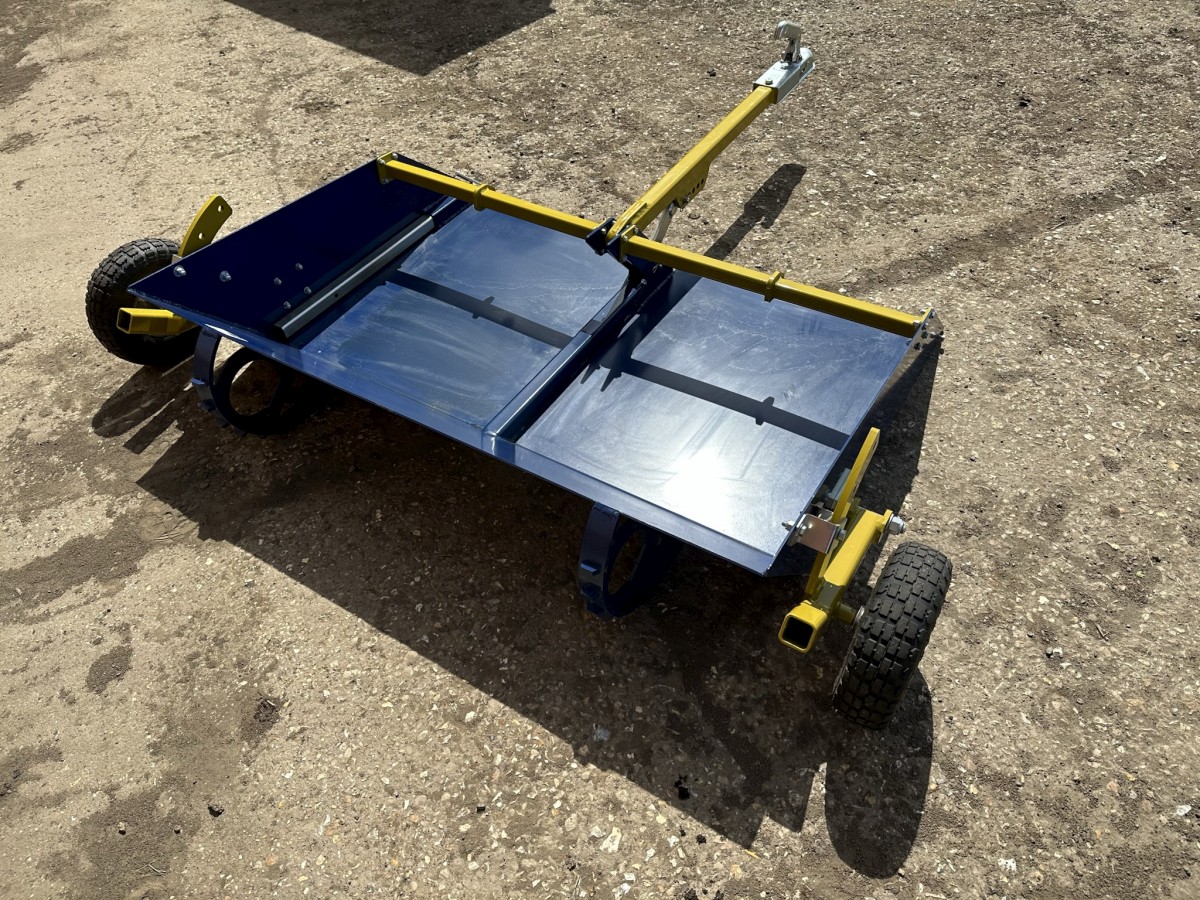 Clever Pasture Skipper / Trailer Printer-friendly versionClever Pasture Skipper/ Trailer Paddock Cleaner 4ft wide Tow behind Ride on mower, ATV or Compact tractor Rear transport wheels